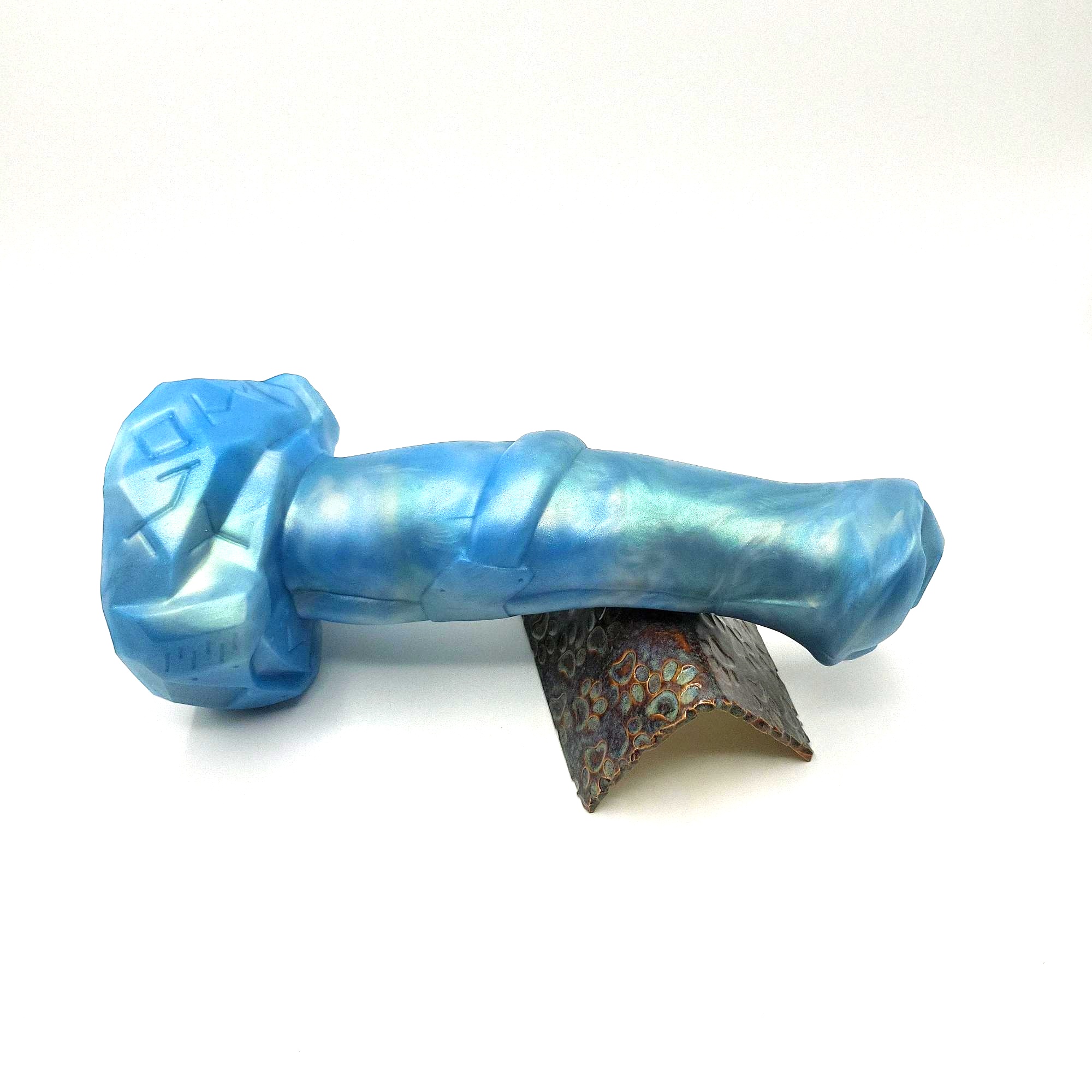 Stoic is quite voluminous, showing its hefty mass and fat flare on the first glance. The angled flare design helps with insertion, providing a smoother experience compared to more common flat flares. Its robust shaft ensures stability during use, minimizing any unwanted wobbling. Handling large toys is difficult enough with all that lube around anyway. The tip works great for both P and G-Spot stimulation. And the pronounced medial ring almost serves as a second flare, it is very noticeable.