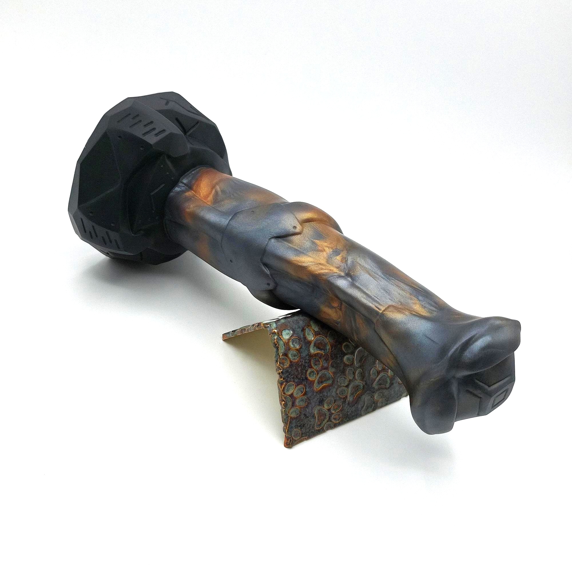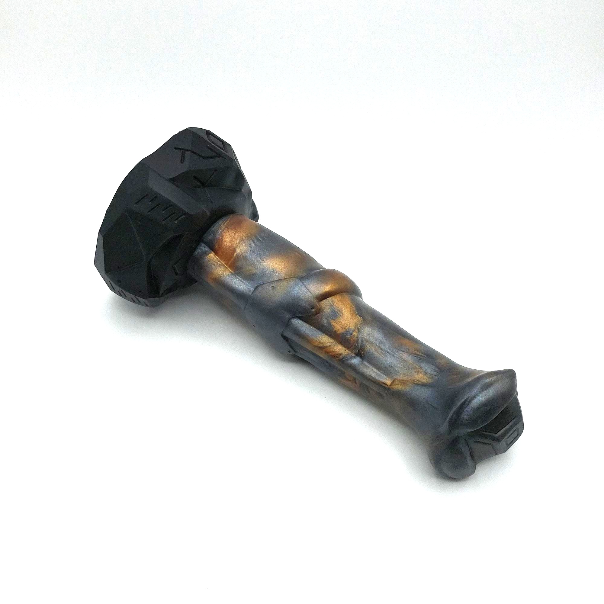 Stoic is quite voluminous, showing its hefty mass and fat flare on the first glance. The angled flare design helps with insertion, providing a smoother experience compared to more common flat flares. Its robust shaft ensures stability during use, minimizing any unwanted wobbling. Handling large toys is difficult enough with all that lube around anyway. The tip works great for both P and G-Spot stimulation. And the pronounced medial ring almost serves as a second flare, it is very noticeable.