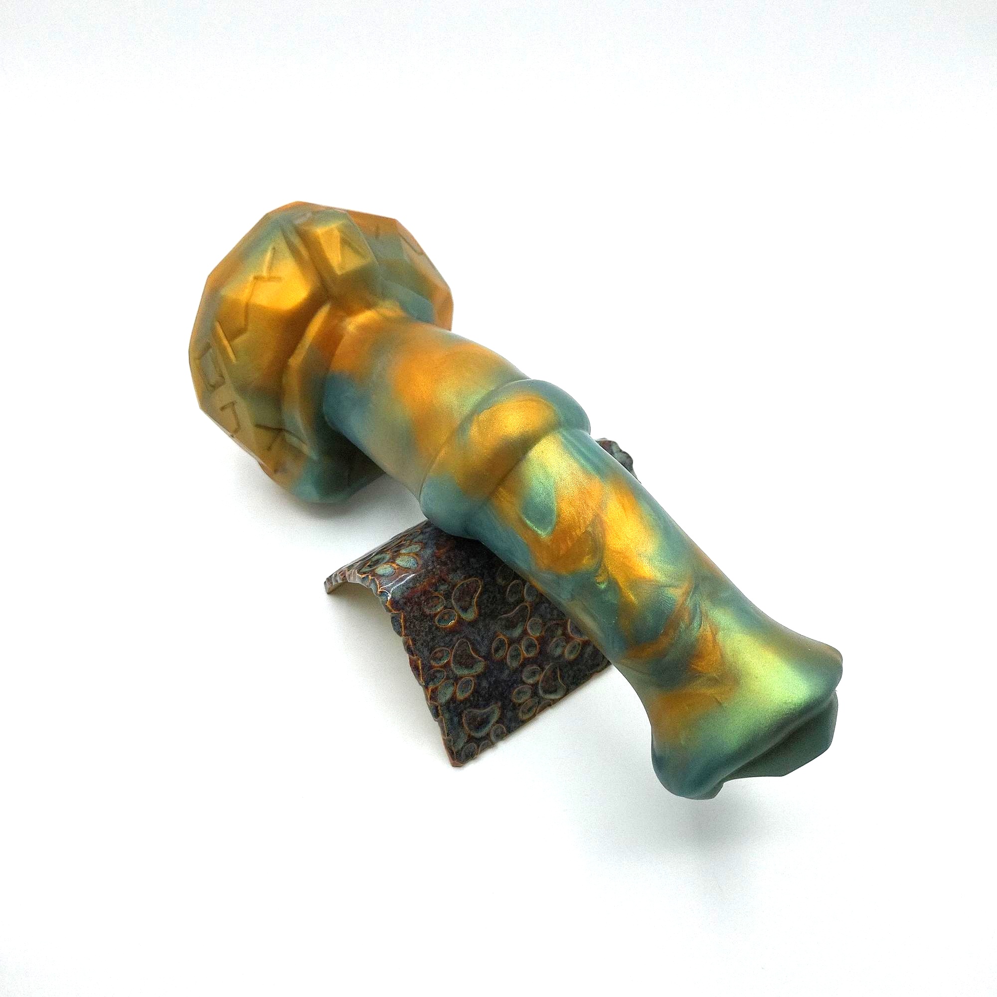 Stoic is quite voluminous, showing its hefty mass and fat flare on the first glance. The angled flare design helps with insertion, providing a smoother experience compared to more common flat flares. Its robust shaft ensures stability during use, minimizing any unwanted wobbling. Handling large toys is difficult enough with all that lube around anyway. The tip works great for both P and G-Spot stimulation. And the pronounced medial ring almost serves as a second flare, it is very noticeable.