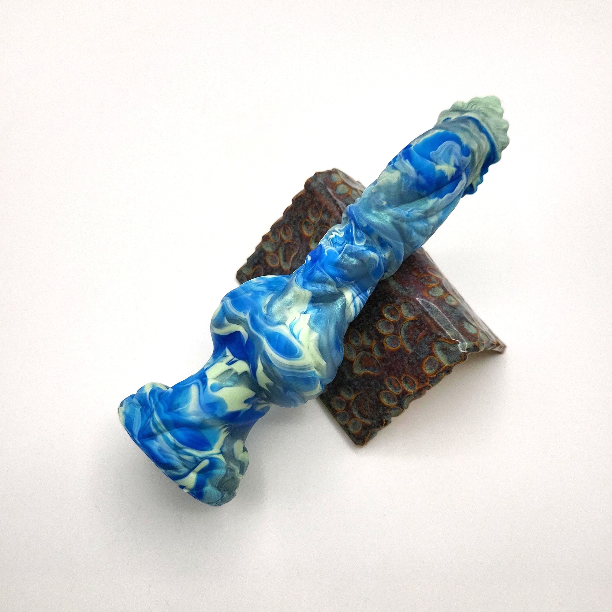 Hephos offers a lot of texture while still maintaining a streamlined shape. The bumpy tip is quite stimulating and the lower half offers a comfortable knotting experience. :3